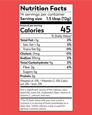 Cacao powder*†, coconut sugar*, vanilla*, Rasa Magnificent Mushroom extract blend (turkey tail mushroom 8:1 extract*§, cordyceps mushroom 8:1 extract*‡, lion’s mane mushroom 8:1 extract*‡, reishi mushroom 16:1 extract*‡, tremella mushroom 1:1 extract*§, poria mushroom 1:1 extract*§), Himalayan salt