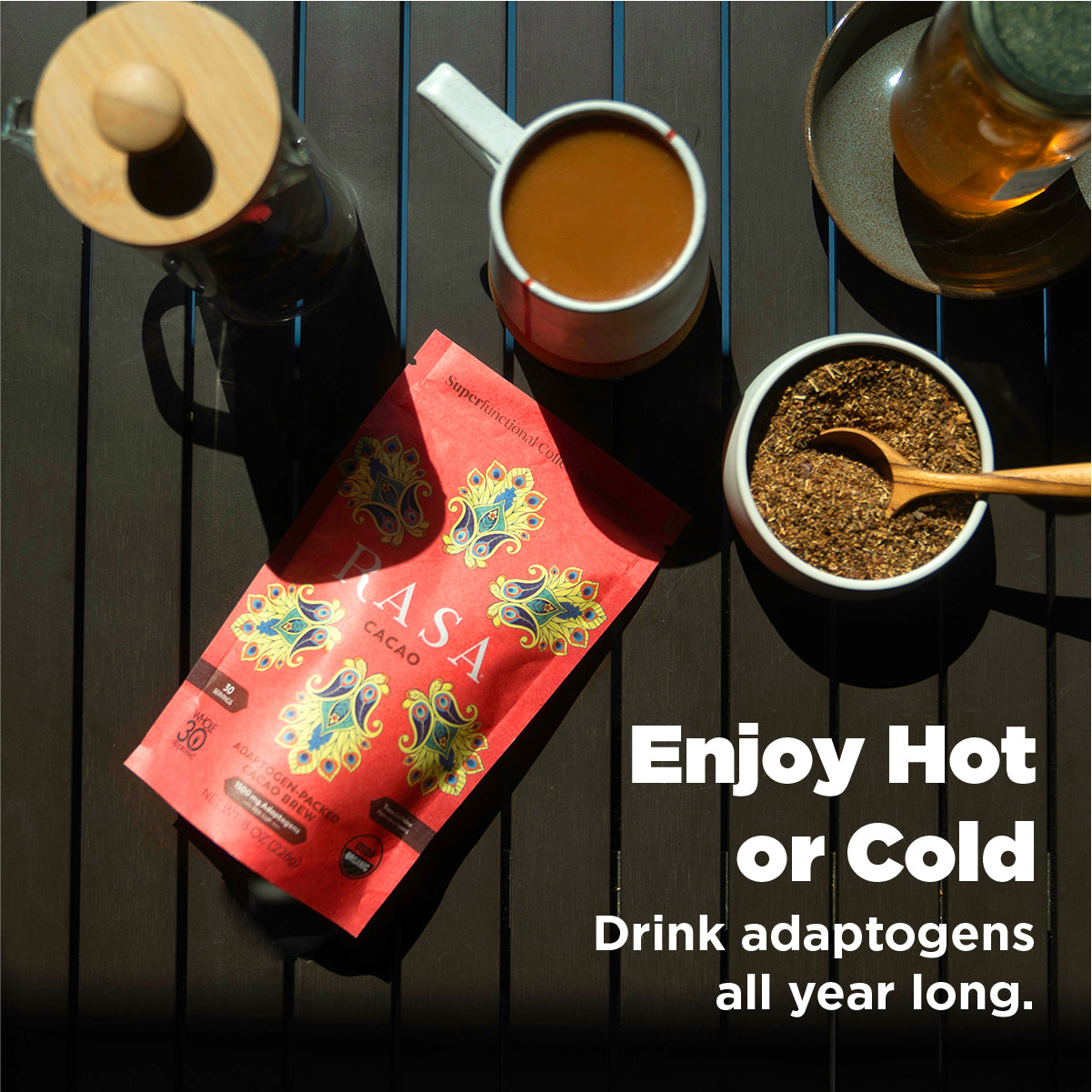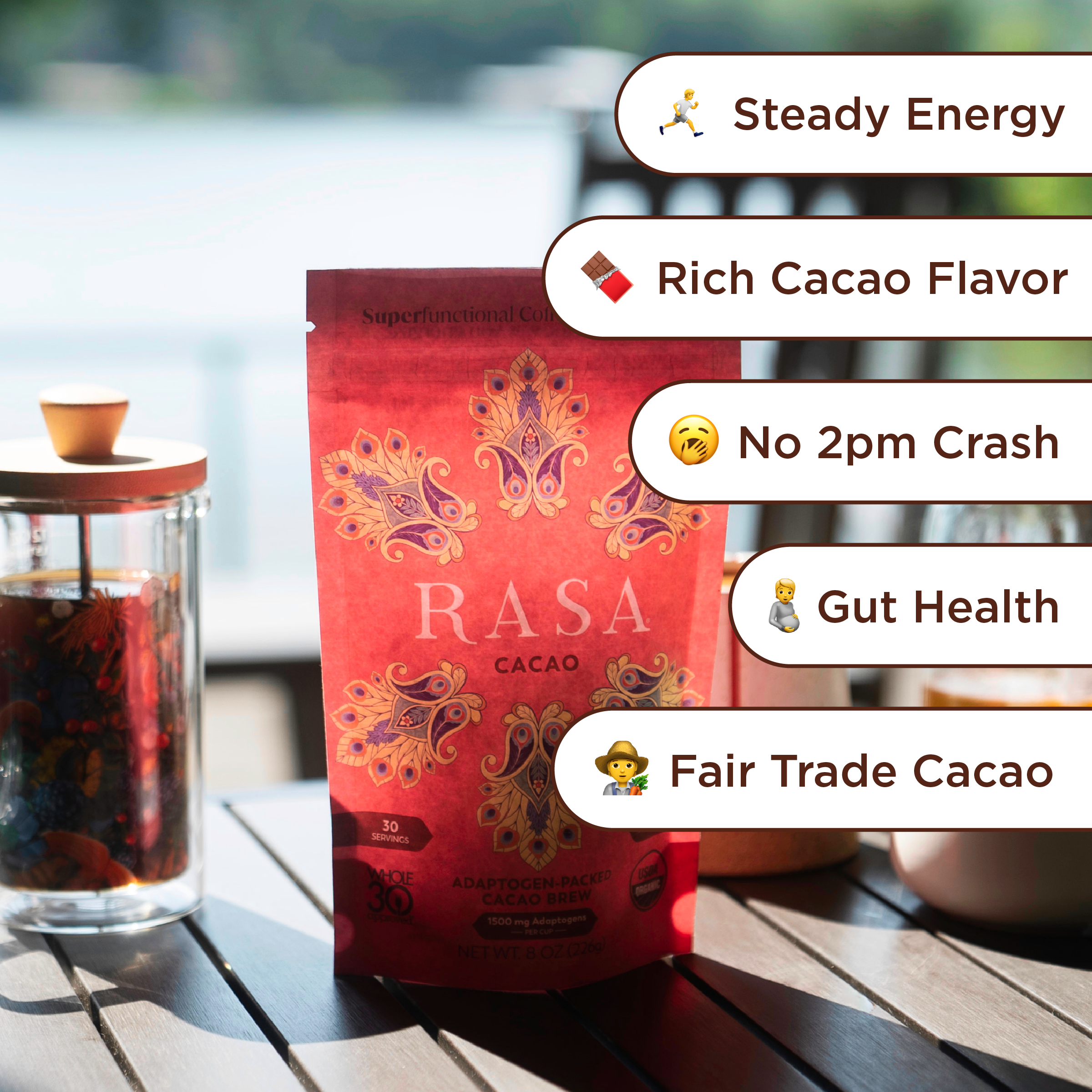“Tastiest therapy ever! I love the chocolatey sense of calm I get from my daily cup of Rasa Cacao.”