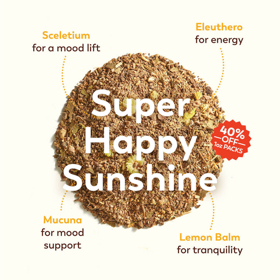Roasted cacao*, roasted chicory*, roasted burdock*, lemon myrtle*, fig*, shatavari*, grains of paradise, roasted dandelion*, he shou wu*, codonopsis*, mucuna extract, ceylon cinnamon*, eleuthero*, lemon balm extract, rhodiola extract*, helichrysum flower*, sceletium extract , & <1% malto and cassava dextrin