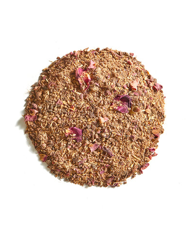 Roasted cacao*, roasted chicory*, roasted burdock*, ginger*, roasted dandelion*, shatavari*, maca extract, rose petals*, codonopsis*, he shou wu*, hawthorn berry*, rose powder*, schisandra extract*, eleuthero*, ashwagandha*, rhodiola*, cayenne*, contains <1% malto and cassava dextrin